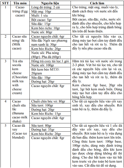 Mộtsố thức uống làm từ cacao đen như: